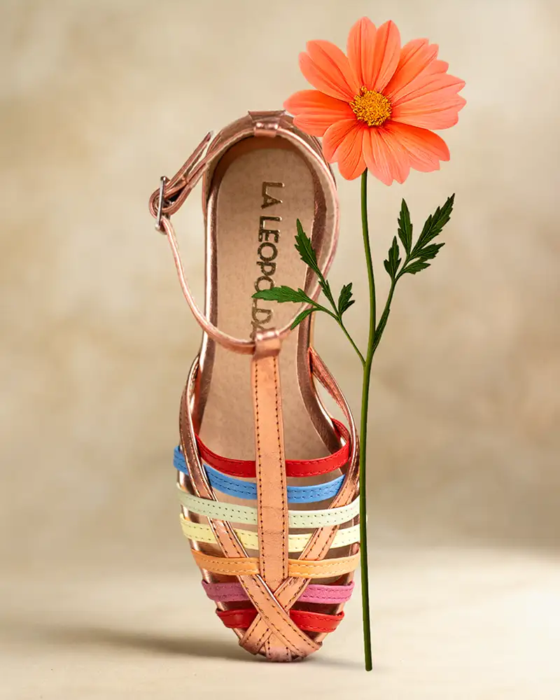 Sandalias chatitas de cuero cobre y tiras en mix de colores Iris