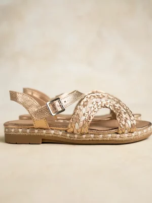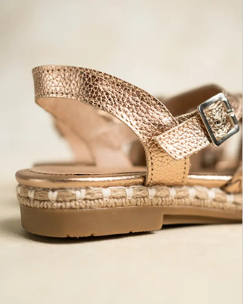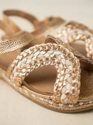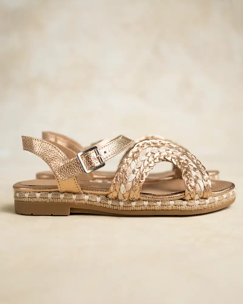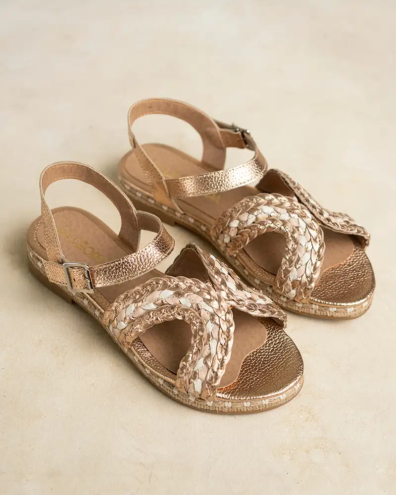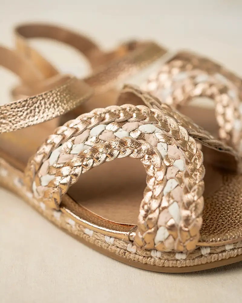 Sandalias cobre metalizado con trenzas combinadas en natural y beige con base goma Zeyen