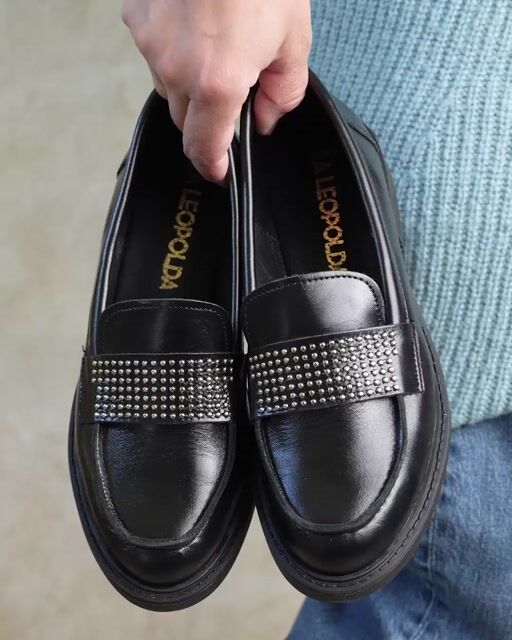 Los Rayuela en cuero negro brilloso reinterpretan el mocasín de siempre con un detalle que cambia todo: tachitas niqueladas en la vincha que le suman capitulos a esta historia. Estan diseñados en un cuero brilloso negro, preciosos.